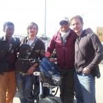 Jutra tukaj so precej hladna, zato sva se dokaj hitro ustavila in se sprehodila ter ogrela v vzhajajocem soncu. Ni minilo dolgo, ko se je ob nama ustavil motor, na njem pa dva indijska osebka, glede na kolicino prtljage bi ju lahko definiral kot popotnika. Bila sta Razi in Maajed, novinarja iz Delhi-ja, ki sta pisala zgodbo za drzavni casopis in sta se v iskanju le te odpravljala v Jaisalmer na puscavski festival. Povprasala sta naju ce sva OK, nama ponudila jedaco in pijaco ter odrinila naprej. A nista zginila niti za prvi ovinek, ko sta se obrnila in se vrnila. Hotela sta se fotografirati skupaj z nama za spomin in bojda tudi kot foto material za njun clanek. Nadaljevala sta pot, midva pa sva se se malce sprehodila in razgibala, nato pa usedlala najinega natovorjenega Einfielda. Ker je najin motor “King of the Road” sva novinarja kmalu dohitela, jima potrobila in pomahala ter za seboj pustila oblak prahu.